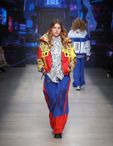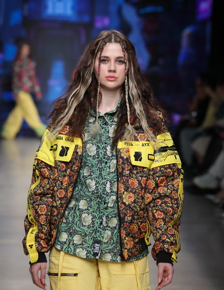 Традиционные орнаменты, веками украшавшие народные костюмы, обретают новую жизнь в неоновых вспышках и цифровых паттернах. Знакомые силуэты трансформируются, приобретая строгую футуристичную геометрию, а славянская символика считывается в голографических проекциях и замысловатых принтах.