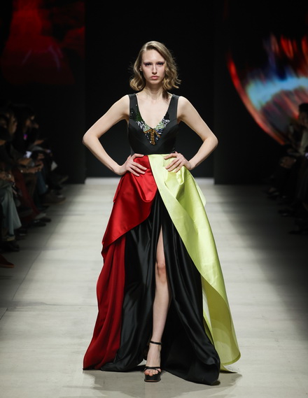 Дизайнер бренда виртуозно жонглирует кодами десятилетия, создавая образы, балансирующие на грани архитектурного авангарда и королевского шика. В основе линейки — архитектурные линии, которые выстраивают силуэт с математической точностью, и экспериментальные формы, ломающие привычные каноны. Эффектные «королевские» подолы добавляют ансамблям драматизма и торжественности, а дерзкие анималистичные принты становятся главным акцентом, заявляя о независимости и силе характера.