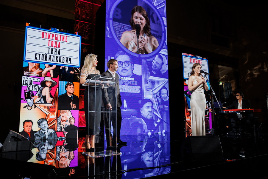 Гости с нетерпением ждали объявления победителя в номинации «Открытие года». Победила молодая актриса Тина Стойилкович, сыгравшая роль в фильмах «Август» и «Наступит лето», а также сериалах «Казанова 2» и «Москва слезам не верит. Все только начинается». Награду вручил Михаил Тройник, процитировавший со сцены Михаила Ломоносова: Дерзайте ныне ободрены Вклад российской земли отметила и сама лауреатка, рассказав, что когда она приехала учиться, то знала буквально несколько слов по-русски. И она благодарна своему мастеру Нине Дворжецкой, которая позволила ей учиться, и теперь у нее, сербки, есть возможность сниматься в нашем кино. Поблагодарить родителей она решила на родном языке. Было очень трогательно, что из зала ее снимала коллега по сериалу «Москва слезам не верит. Все только начинается» Марина Александрова. Там они сыграли одну героиню, просто в разном возрасте. «Актрисой года» стала как раз Марина Александрова. Награду вручили Антон Рогачев и Алексей Лукин, ее партнер по сериалу «Макрон». В этом году успех и звание кинобогини года ей принесла не только картина «Москва слезам не верит. Все только начинается», но и сериалы «Мосгаз 11. Розыгрыш» и «Дыши». В своей речи она поделилась мыслью: «Как сказала одна моя героиня, в 40 лет жизнь только начинается. Это я теперь точно знаю. А вторая ей ответила из другого проекта: «Знаешь, у каждого из нас существует своя слабость. И мы имеем на это право». И самое главное, как он дальше из этого выйдет. Не знаю, как я буду выходить из этого. И что я дальше буду делать. Потому что, когда я получаю такие награды, планка становится высокой, а отбор проектов еще более, так скажем, пристальным».
