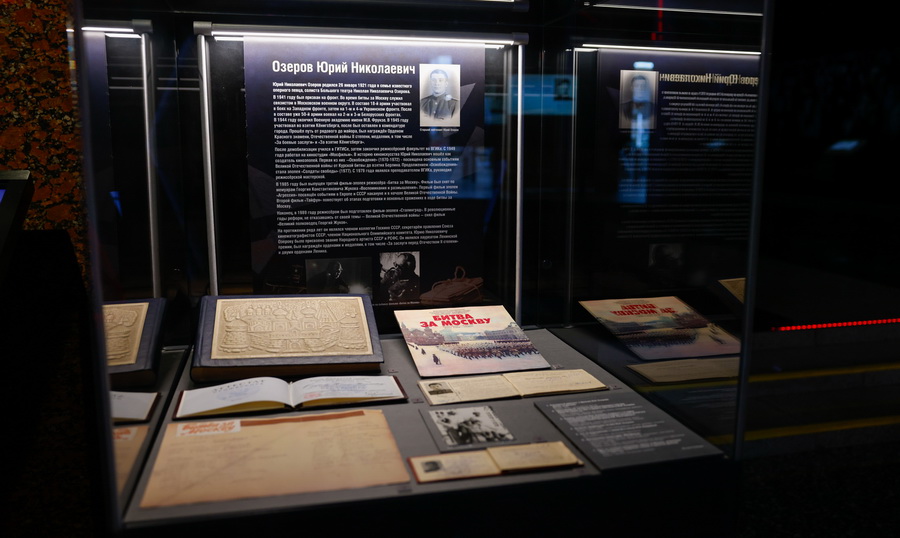 26 августа в Музее Победы открылась обновленная выставка «Семейные реликвии» ко Дню российского кино. Мини-экспозицию посвятили кинорежиссеру, народному артисту СССР Юрию Озерову и его фильму «Битва за Москву», вышедшему на экраны 40 лет назад. «Юрий Николаевич – создатель фильмов-эпопей о Второй мировой войне. Сам будучи фронтовиком, связистом, прошел путь от рядового до майора, был награждён орденом Красного Знамени, Отечественной войны II степени, медалями, в том числе «За боевые заслуги» и «За взятие Кёнигсберга», – рассказали в Музее Победы.