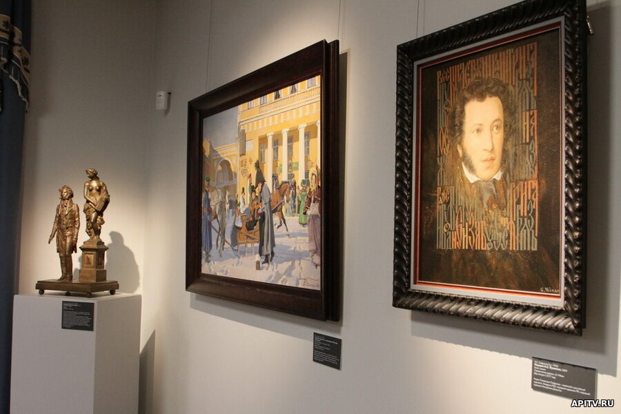Колорит давно ушедшей эпохи сохраняют акварели Ж.- Б. де ла Траверса и Г. Г. Чернецова, запечатлевших Петербург конца XVIII – первой трети XIX века; морские пейзажи И. К. Айвазовского и А. П. Боголюбова, созданные художниками в середине XIX столетия. Среди экспонатов выставки – работы художников последующих эпох, имена которых вошли в «золотой фонд» русского искусства: А. Н. Бенуа, М. А. Врубеля, П. П. Кончаловского, К.А. Коровина, И.И. Левитана, Т.А. Мавриной, К.С. Петрова-Водкина, А.А. Пластова, В. Д. Поленова, Б. В. Щербакова и других. Это иллюстрации к произведениям русских писателей, эскизы костюмов и декораций, виды пушкинских мест. Уникальное собрание скульптуры XVIII, XIX и ХХI веков представлено на выставке мраморными бюстами императрицы Екатерины II и фельдмаршала П. А. Румянцева-Задунайского, выполненными Ф. И. Шубиным в конце XVIII столетия, а также многочисленными скульптурными портретами Пушкина работы А. И. Теребенева (1837), И. П. Витали (1837, отлив XIX века), Р. Р. Баха (1886), З. К. Церетели (2005) и других.