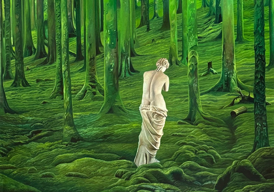 В произведениях Ивана Коршунова фрагменты античной скульптуры, разбросанные по полям-лугам и редким деревням, на первый взгляд, кажутся чуждыми и незащищенными перед данной средой. Однако при внимательном рассмотрении становится понятно, что все эти проявления классической традиции поглощаются и присваиваются природой, словно врастая в нее, становясь ее частью. Взаимодействие Античности с бесконечной перспективой русских пейзажей становится своеобразным отражением процесса естественного «приживания» артефактов, из которых выросла вся европейская культура, на разных сценах. Так, в российских реалиях античная классика давно растворилась и преобразовалась в нечто новое, что подчеркивает уникальность и многогранность нашей культуры.
