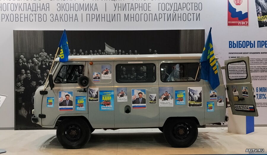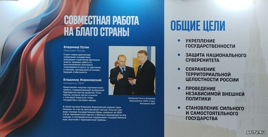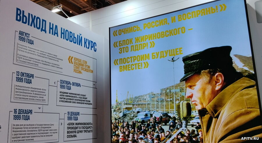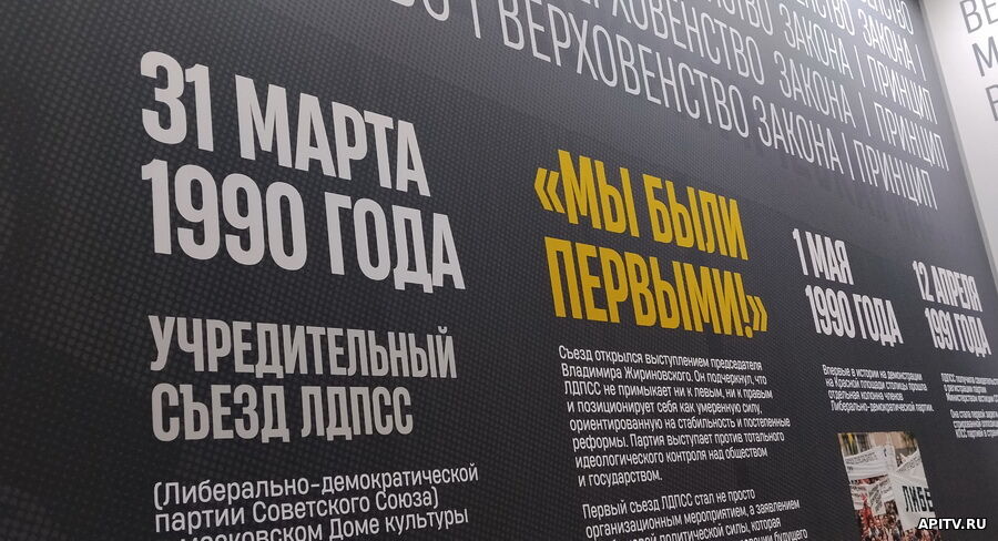 Маршрут выставки: от трибуны до образа будущего Экспозиция логически делится на несколько смысловых блоков, формирующих целостный нарратив. Станция «Становление»: Здесь зритель погружается в атмосферу конца 80-х — начала 90-х. Это время рождения ЛДПР и появления на политическом Олимпе фигуры Жириновского. Архивные кадры митингов, первые предвыборные плакаты и знаменитые выступления, где риторика была острее шпаги. Это станция о том, как харизма и ораторское искусство смогли создать партию практически с нуля.