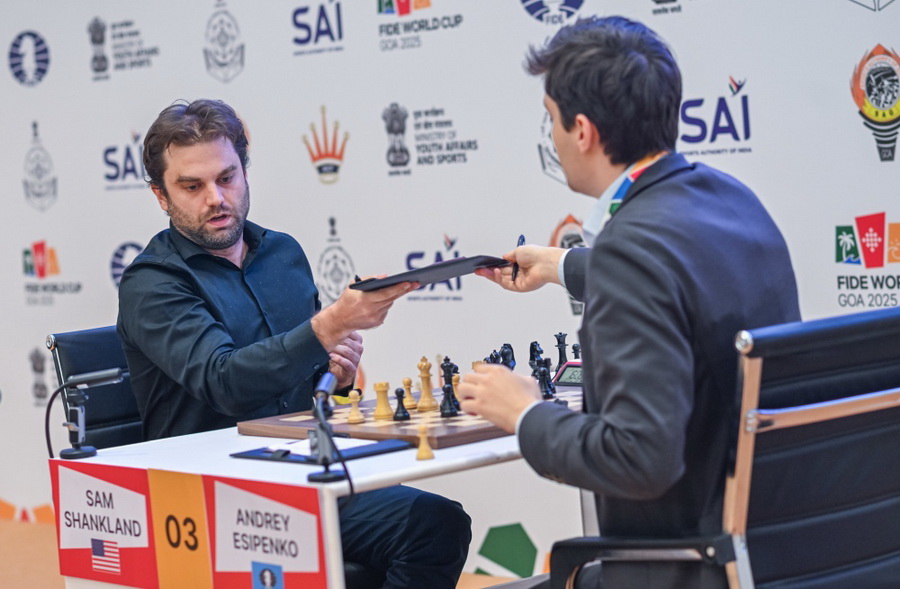 В Гоа прошли первые матчи ¼ Кубка мира по шахматам – 2025. В этой стадии остался только один российский гроссмейстер - Андрей Есипенко (2693), который провёл начальную встречу с американцем Сэмом Шенкленд (2654). Оба шахматиста участвовали в десяти чемпионатах мира. В 2021-ом году они показали свои лучшие результаты: Шенкленд дошел до четвертьфинала, где проиграл Карякину, а Есипенко дошел до пятого раунда, где уступил Карлсену. Эта общая история делает этот матч особенно захватывающим. Разновидность ферзевого гамбита с разменом пешек задала тон позиционной борьбе, которая началась после партии между Магнусом Карлсеном и Яном Непомнящим (2021) и продолжалась до тех пор, пока Шенкленд не сбил их с пути на 10-м ходу. За этим последовала сбалансированная игра с пешечной структурой в стиле Карлсбада, в которой оба соперника умело маневрировали. У черных был потенциал для резкого наступления на королевском фланге, а у белых — на ферзевом, но после нескольких разменов фигур напряжение спало. Не найдя явных путей к победе, игроки согласились на ничью в сухом эндшпиле с четырьмя ладьями. Первые матчи четвертьфинала Кубка мира - 2025: Сэм Шенкленд ½–½ Андрей Есипенко Вторые матчи шестого тура состоятся 18 ноября в 15:00 по местному времени. Фото - ФИДЕ "Шахматы 4К" на API TV - https://apitv.ru/publ/shakhmaty/16 "Шахматы 4К" в Telegram - https://t.me/shahmat4k "Шахматы 4К" в ВКонтакте - https://vk.com/shahmat4k ЕЩЁ ПО ТЕМЕ: Андрей Есипенко вышел в 1/4 финала Кубка мира по шахматам - 2025 Иван Кудрин из России победил на Чемпионате мира по шахматам среди любителей 2025 «Столичная ладья». Фестиваль по быстрым шахматам. "Шахматы 4К" Турниры претендентов ФИДЕ 2026 пройдут на Кипре В ГПНТБ России прошел детский фестиваль по быстрым шахматам «Столичная ладья» "Шахматы 4К". Уникальная личность шахматного мира - Исаак Линдер Фестиваль «Столичная ладья». Программа "Шахматы 4К". Ведущая - Светлана Мельникова "Царские Шахматы". "Шахматы 4К". Светлана Мельникова Светлана Мельникова и её телепрограмма «Шахматы 4K» "Шахматы 4К". Турнир Ветеранов. Автор и ведущая - Светлана Мельникова Шахматы 4К. Шахматы и Космос. Космические шахматы. Автор и ведущая - Светлана Мельникова "Шахматы 4К". Вэйцы — древняя китайская игра Шедевры Музея Шахмат. Телепроект "Шахматы 4К". Автор и ведущая - Светлана Мельникова Шахматы 4К. Шахматы и Победа в Великой Отечественной войне. Ведущая - Светлана Мельникова "Шахматы 4К". Преимущества компьютерных шахмат Агентство Популярной Информации API TV | |