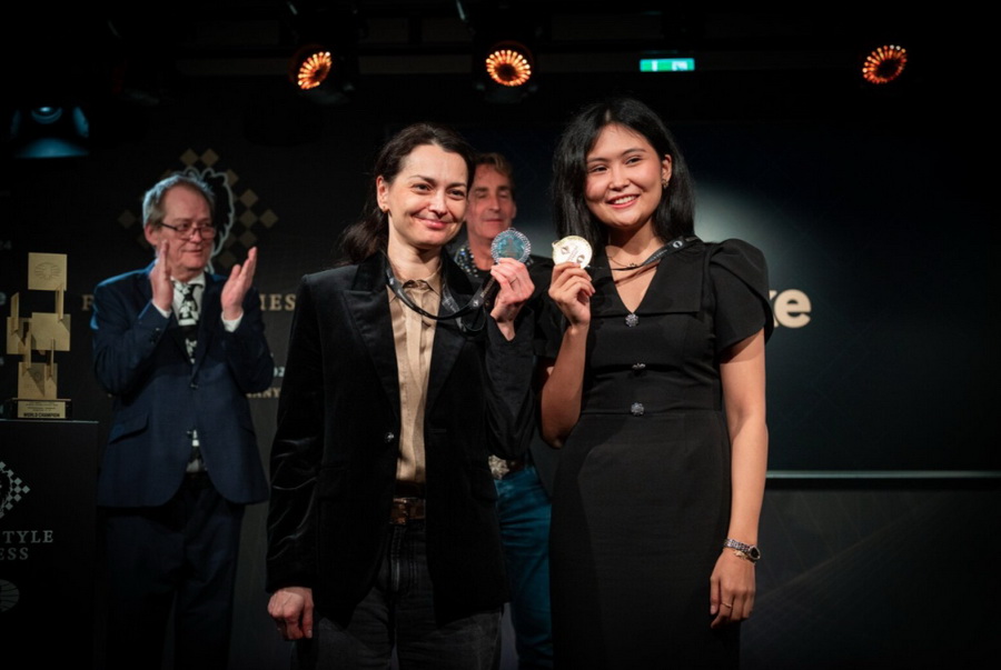 В женском показательном матче Бибисара Асаубаева (Казахстан) одержала победу над Александрой Костенюк (Швейцария), выиграв третью партию и сведя вничью четвертую. Фото: Леннарт Оутс и Стив Бонхейдж (Freestyle Chess) Самая полная и интересная информация о шахматных перипетиях - в медиа-проекте API TV "Шахматы 4К" Светланы Мельниковой. ЕЩЁ ПО ТЕМЕ: Магнус Карлсен встретится с Фабиано Каруаной в финале FIDE Freestyle Chess World Championship Открыт приём заявок на детский шахматный фестиваль «Столичная ладья» Уникальный проект «Космос 65 Ренессанс» представили на выставке "Уникальная Россия» Шахматы. Командный чемпионат мира среди школьников – 2026 пройдёт в новом формате Фестиваль «Столичная ладья». Программа "Шахматы 4К". Ведущая - Светлана Мельникова "Царские Шахматы". "Шахматы 4К". Светлана Мельникова "Шахматы 4К". Уникальная личность шахматного мира - Исаак Линдер "Шахматы 4К". Турнир Ветеранов. Автор и ведущая - Светлана Мельникова Светлана Мельникова и её телепрограмма «Шахматы 4K» Шахматы 4К. Шахматы и Космос. Космические шахматы. Автор и ведущая - Светлана Мельникова Шедевры Музея Шахмат. Телепроект "Шахматы 4К". Автор и ведущая - Светлана Мельникова Шахматы 4К. Шахматы и Победа в Великой Отечественной войне. Ведущая - Светлана Мельникова Агентство Популярной Информации #APITV #Шахматы #Шахматы4к #Chess #НовостиШахмат Источник: https://fide.com | |