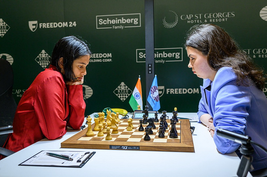 Вайшали сохраняет спокойствие Сама Вайшали Рамешбабу провела тур очень прагматично. Играя чёрными фигурами против Анны Музычук, она уверенно свела партию к ничьей, сохранив лидерство с минимальным риском. Это демонстрирует зрелый подход индийской шахматистки к концовке турнира.
